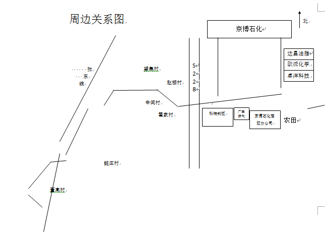 廠(chǎng)區西側為博小鐵路線(xiàn),西側為盛和熱電有限公司和阿克蘇諾貝爾(博興)有限公司,再向西為勝利三路,自廠(chǎng)區西側出入口設一條道路與經(jīng)濟開(kāi)發(fā)區化工路相通,化工路向南通向205國道,兩路交叉口西南方向為博興縣汽車(chē)站和協(xié)和醫院;廠(chǎng)區北側自西向東為凱和化工有限公司、董初村、董孫村,東側為空地,向東為淄東鐵路線(xiàn),空地東北方向為董孫村部分民居、再向東為博興五中,空地東南方向為西上疃村;廠(chǎng)區向南依次為淄東鐵路線(xiàn)、引黃濟青干渠、205國道、東谷王村。 |