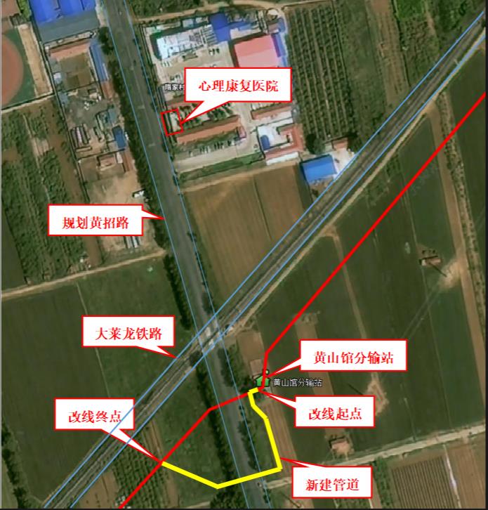 大萊龍鐵路天然氣管道遷改工程周?chē)鸀檗r田,穿越黃招路。 |