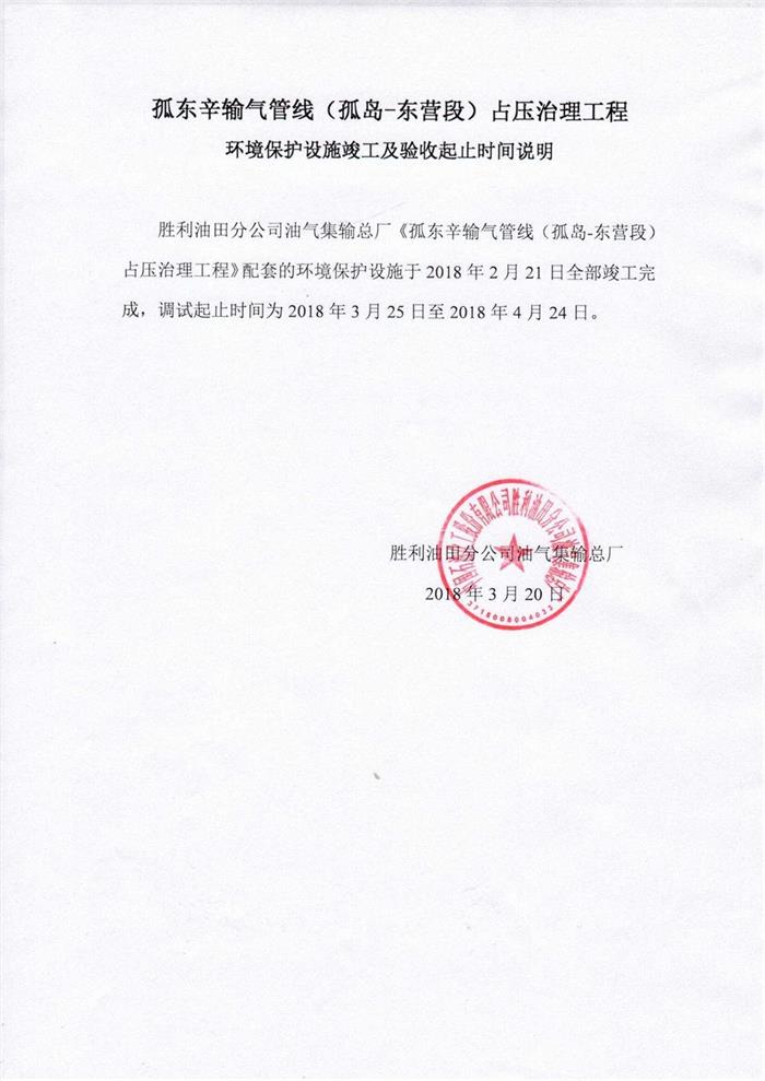 孤東辛輸氣管線(xiàn)(孤島-東營(yíng)段)占壓治理工程環(huán)境保護設施竣工及驗收起止時(shí)間說(shuō)明
