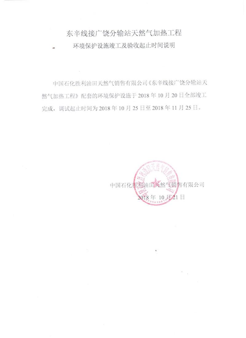 東辛線(xiàn)接廣饒分輸站天然氣加熱工程環(huán)境保護設施竣工及驗收起止時(shí)間說(shuō)明